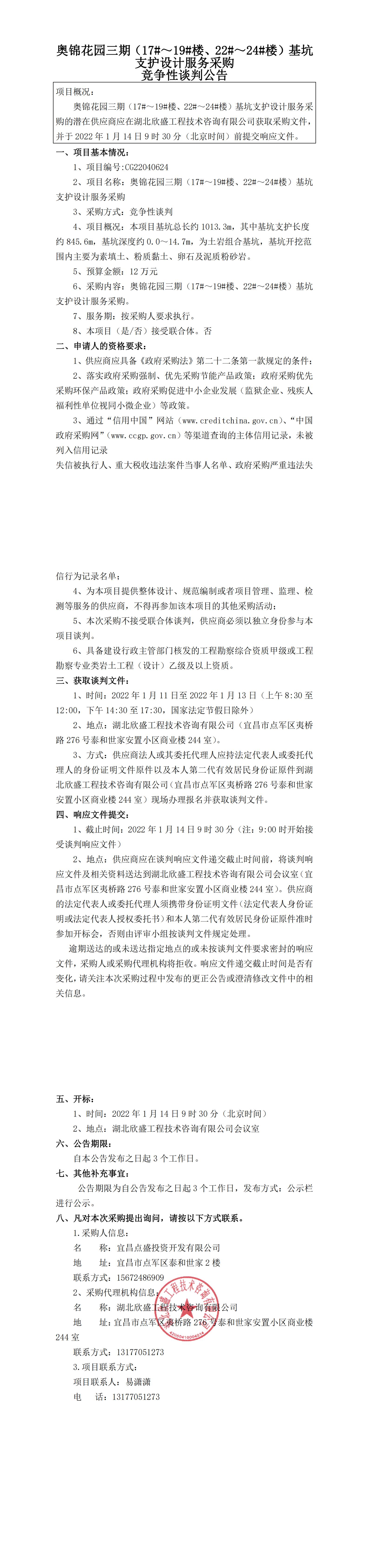 奧錦花園三期(17#~19#樓、22#~24#樓)基坑支護(hù)設(shè)計(jì)服務(wù)采購競(jìng)爭(zhēng)性談判公告