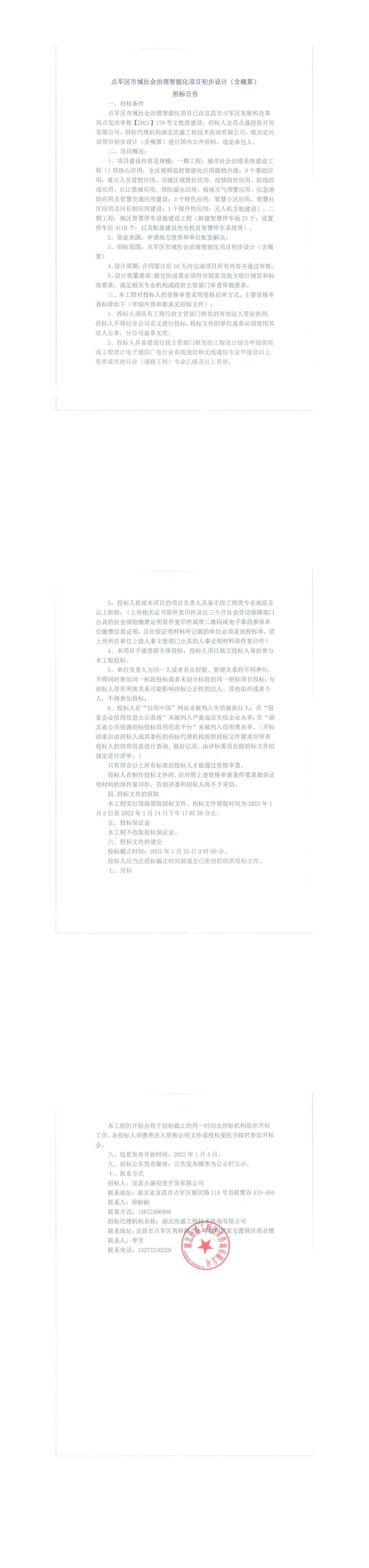 點軍區(qū)市域社會治理智能化項目初步設(shè)計(含概算)招標公告