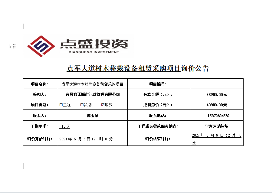 點(diǎn)軍大道樹(shù)木移栽設(shè)備租賃采購(gòu)項(xiàng)目詢價(jià)公告