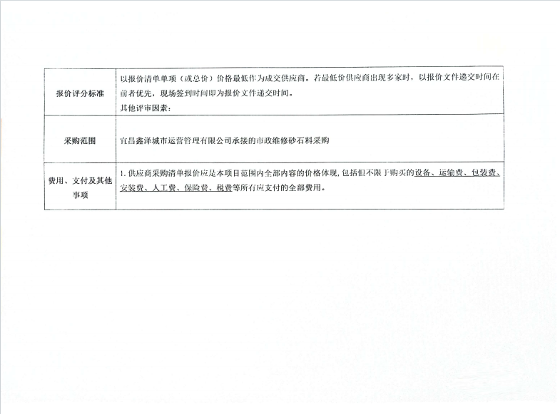 宜昌鑫澤城市運(yùn)營(yíng)管理有限公司市政維修石材采購(gòu)項(xiàng)目詢價(jià)公告
