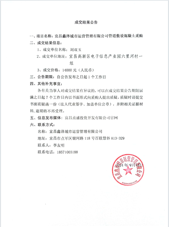管道敷設(shè)混凝土采購項目成交公告
