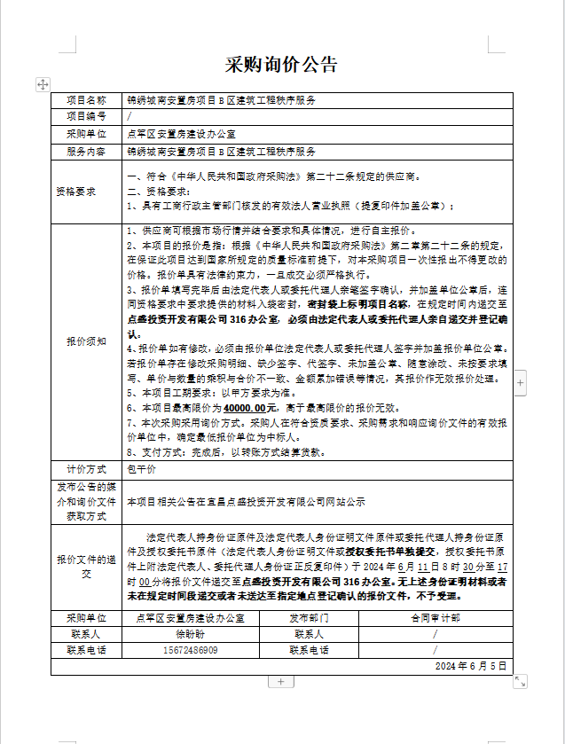 錦繡城南安置房項(xiàng)目B區(qū)建筑工程秩序服務(wù)詢價公告