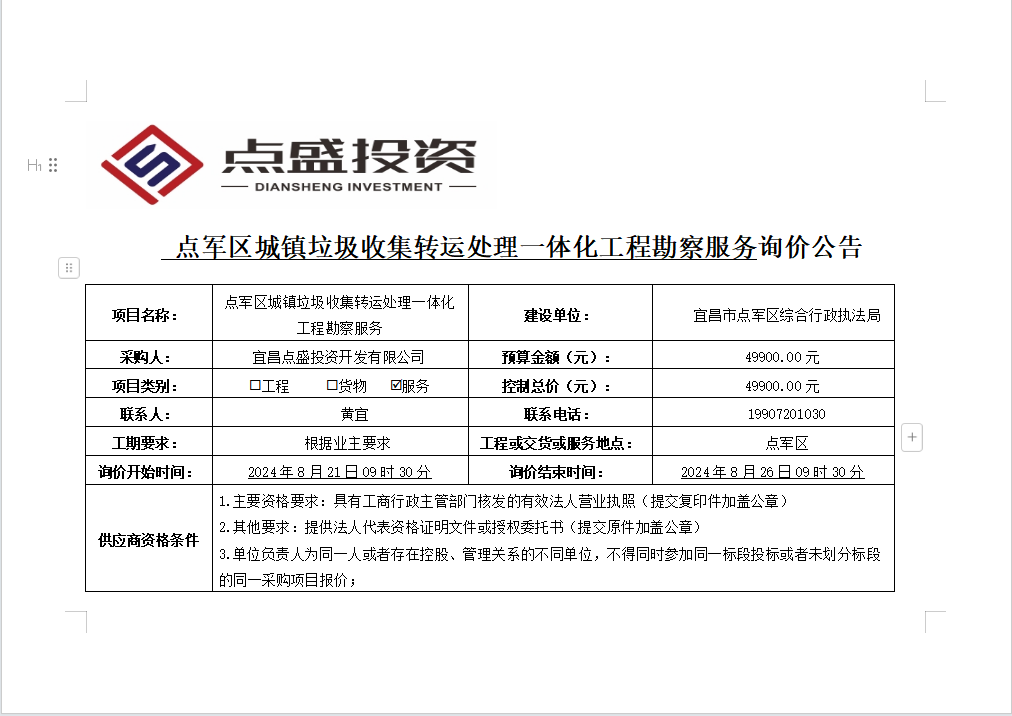 點(diǎn)軍區(qū)城鎮(zhèn)垃圾收集轉(zhuǎn)運(yùn)處理一體化工程勘察服務(wù)詢價(jià)公告