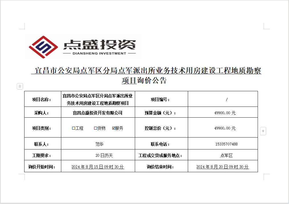 宜昌市公安局點(diǎn)軍區(qū)分局點(diǎn)軍派出所業(yè)務(wù)技術(shù)用房建設(shè)工程地質(zhì)勘察項(xiàng)目詢價(jià)公告