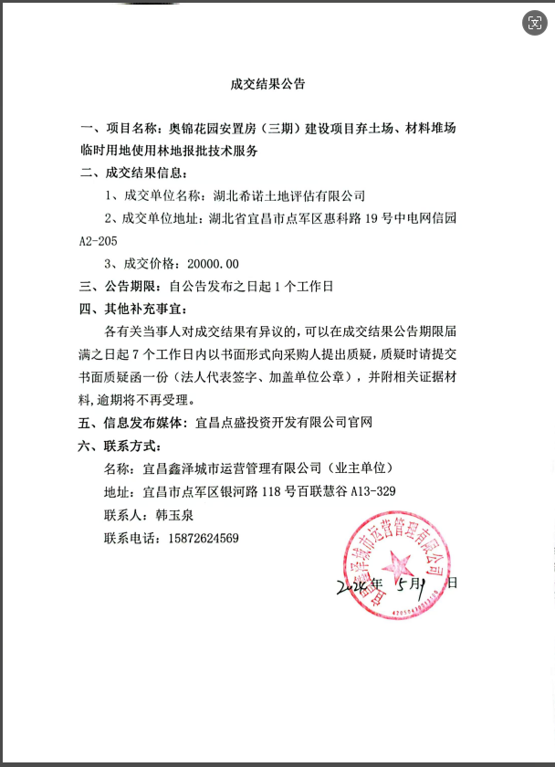 奧錦花園安置房(三期)建設(shè)項(xiàng)目棄土場、材料堆場臨時用地使用林地報批技術(shù)服務(wù)成交公告