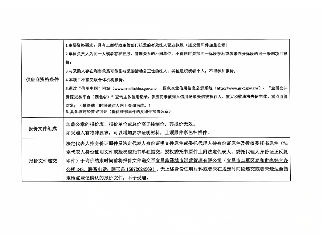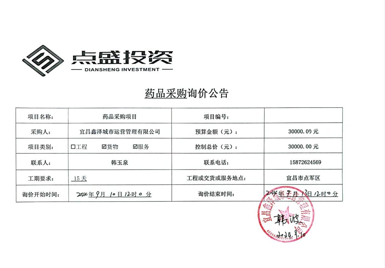 宜昌鑫澤城市運(yùn)營(yíng)管理有限公司藥品采購(gòu)項(xiàng)目詢(xún)價(jià)公告