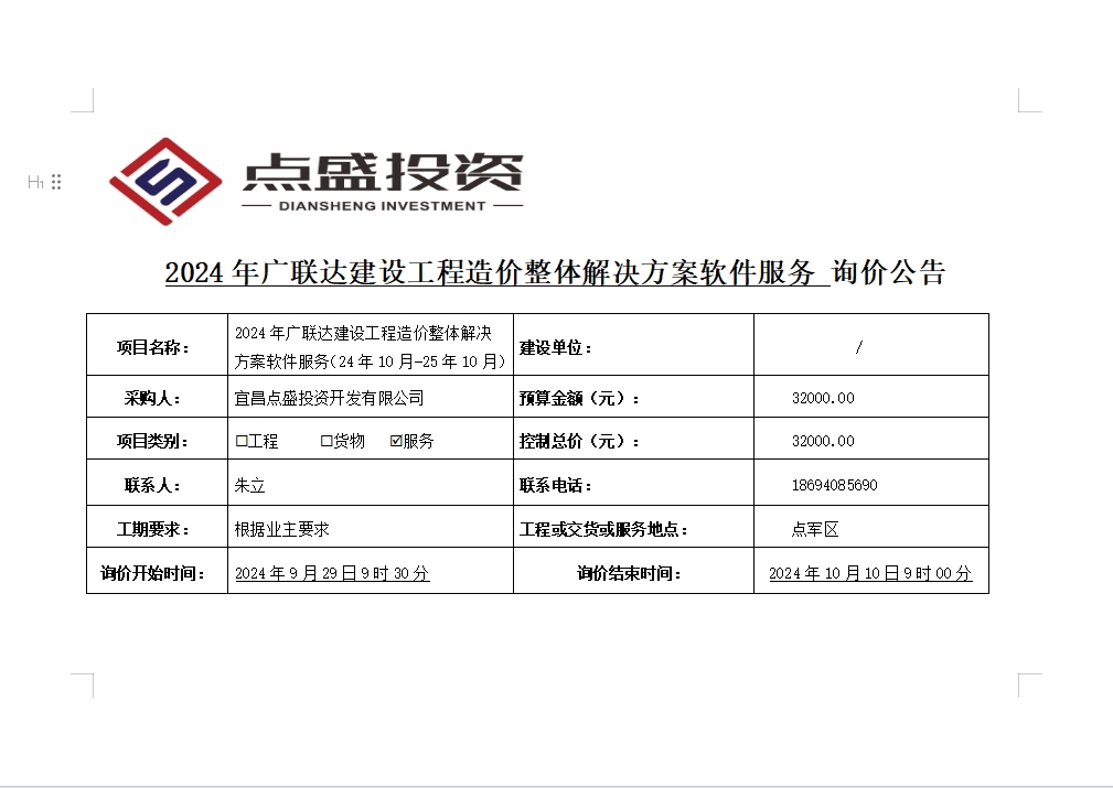 2024年廣聯(lián)達(dá)建設(shè)工程造價整體解決方案軟件服務(wù)詢價公告