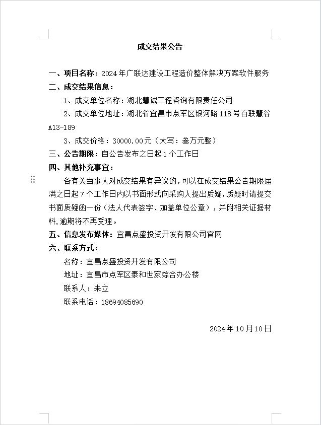 2024年廣聯(lián)達建設工程造價整體解決方案軟件服務成交公告