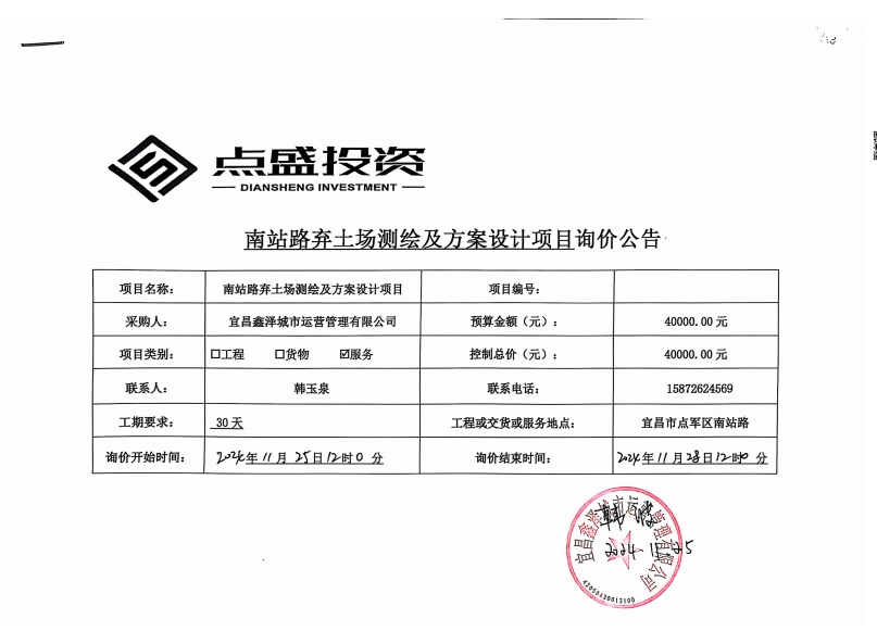 南站路棄土場測繪及方案設(shè)計項(xiàng)目詢價公告