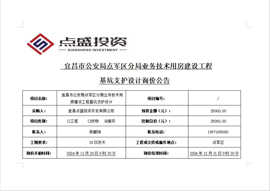 宜昌市公安局點(diǎn)軍區(qū)分局業(yè)務(wù)技術(shù)用房建設(shè)工程基坑支護(hù)設(shè)計(jì)詢價(jià)公告