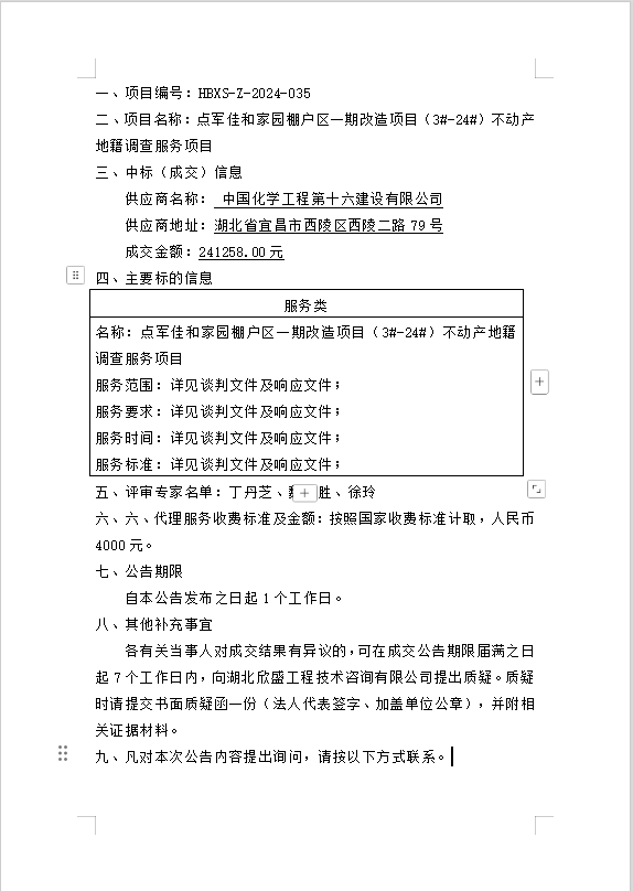 點軍佳和家園棚戶區(qū)一期改造項目(3#-24#)不動產(chǎn)地籍調(diào)查服務(wù)項目成交公告